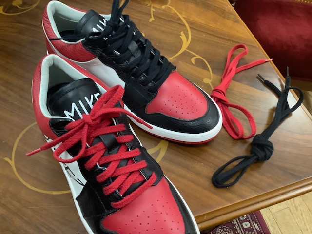 靴紐(レース)をレッドに変えました。リアルにあのブランドに近くなりますが。